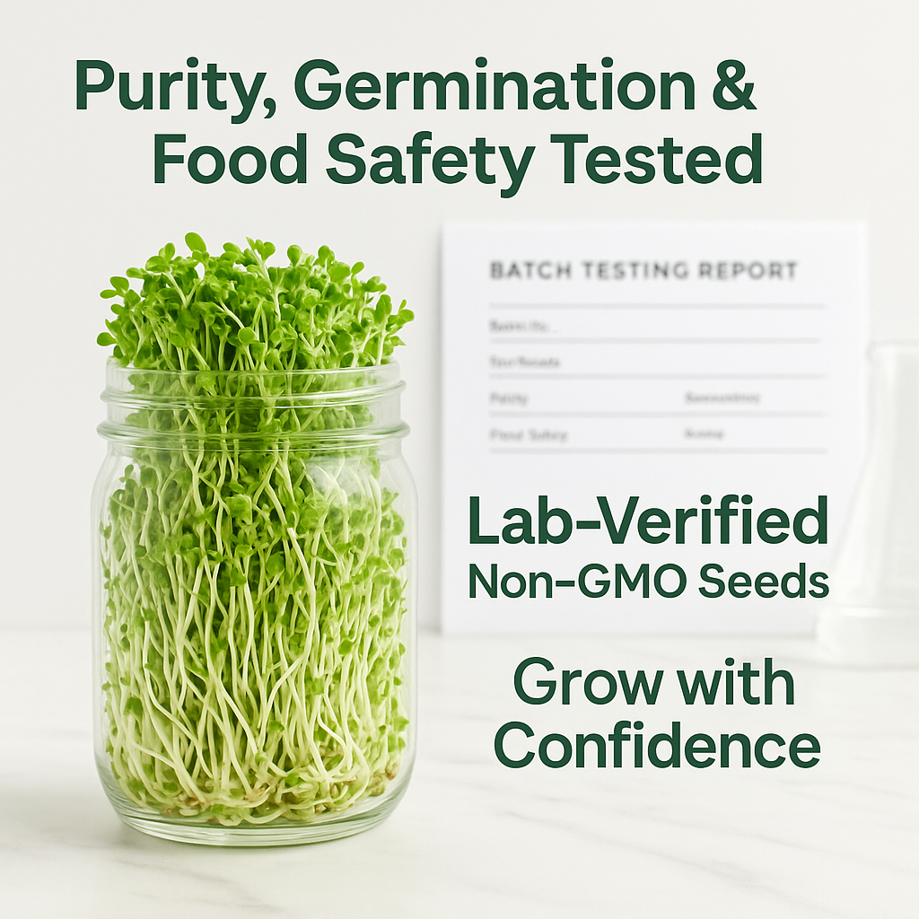 - PURE, TESTED, NON-GMO SEEDS YOU CAN TRUST. Every batch of ZestiGreens seeds is lab-tested for germination and food safety, non-GMO, and never treated—so you can grow confidently and safely at home, knowing you're feeding your body only the best.