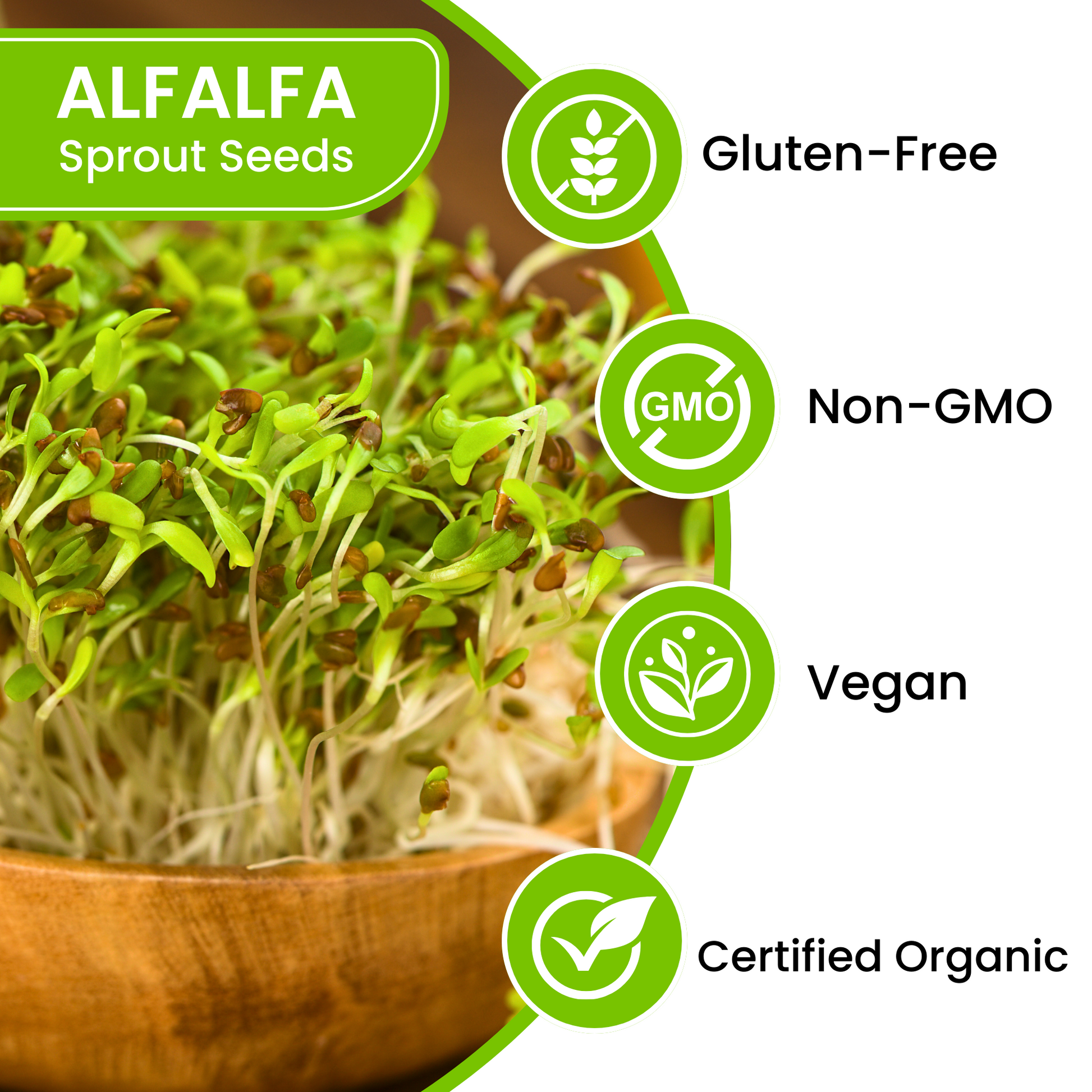 - HIGH-QUALITY ORGANIC SEEDS: Our alfalfa seeds are 100% organic and non-GMO, grown in the USA under strict quality standards to ensure the healthiest and safest sprouts for your consumption.