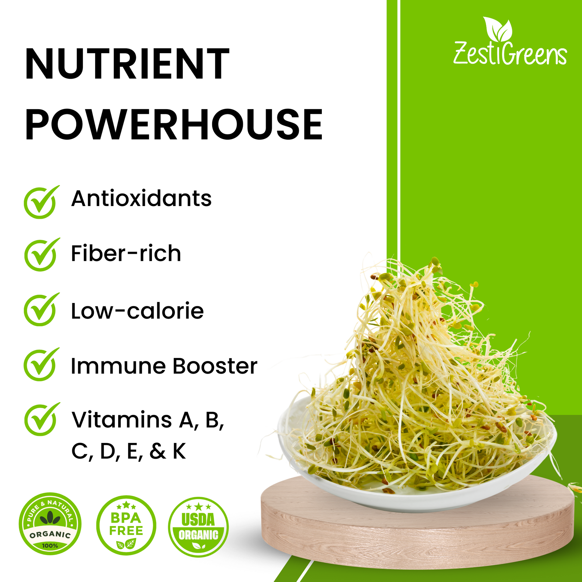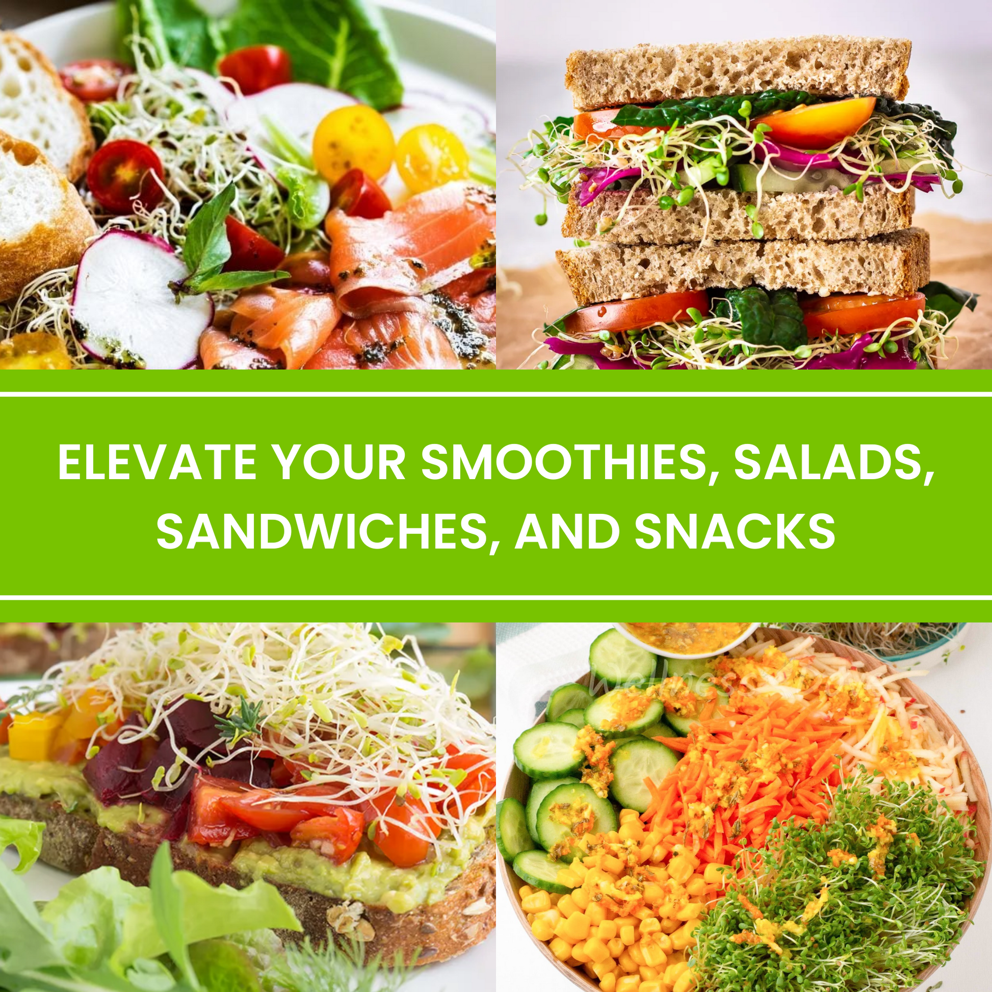 - NUTRIENT-DENSE SUPERFOOD: Alfalfa sprouts are packed with essential vitamins, including A, C, and K, as well as minerals like calcium, magnesium, and iron, providing a substantial boost to your daily nutrition.